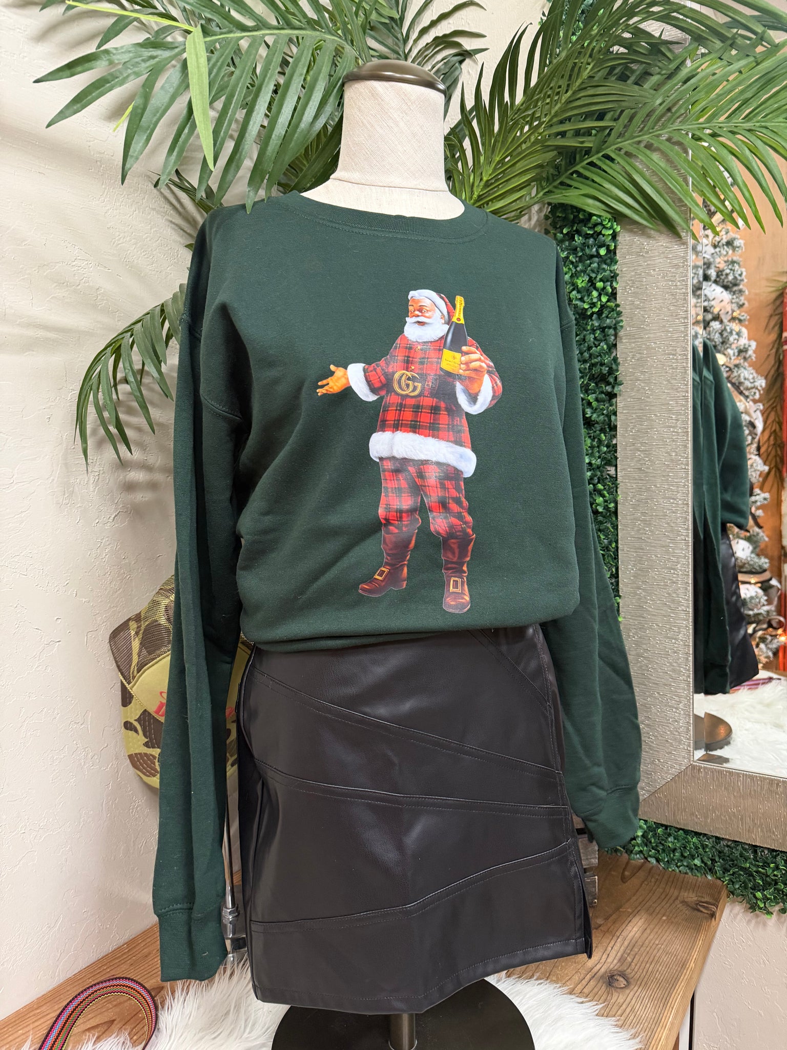 Plaid Santa Sweatshirt - Hunter Green